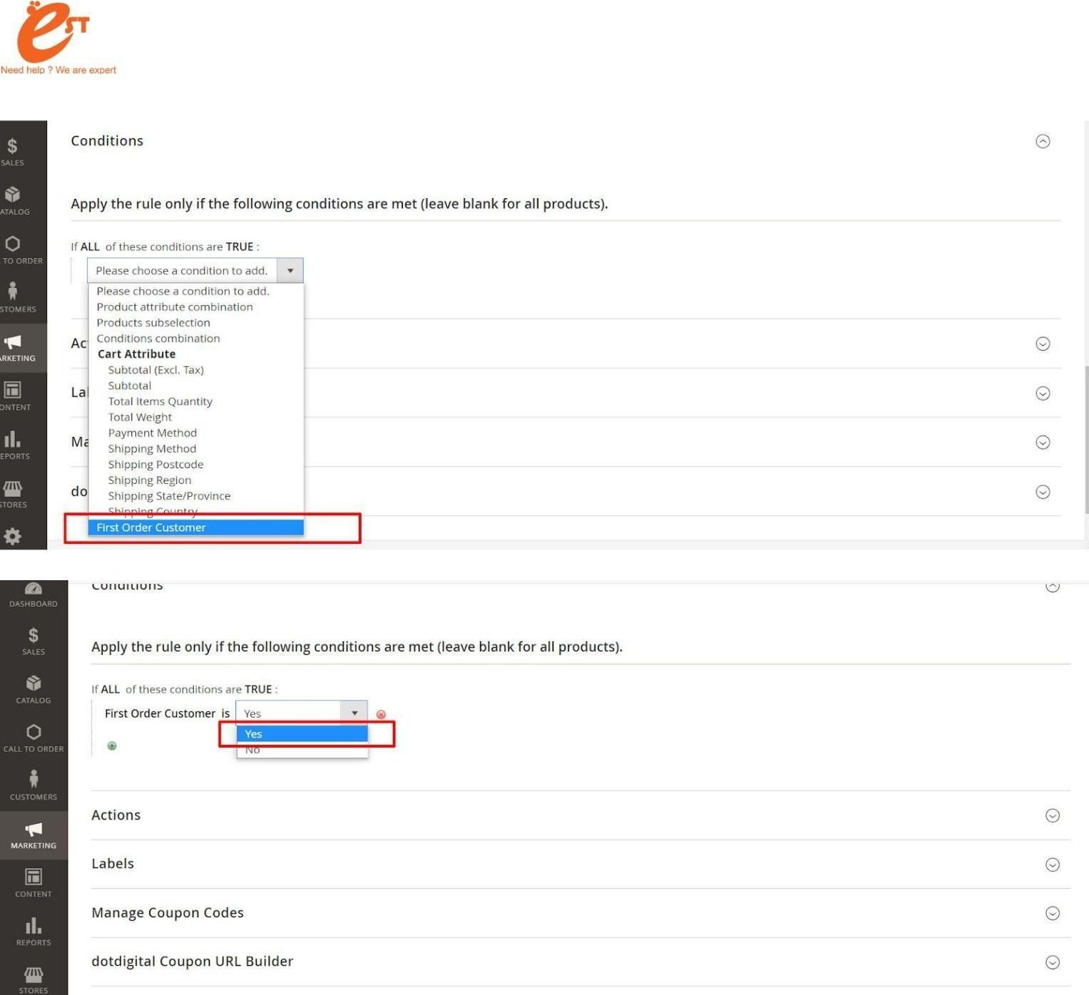 First Order Coupon is a powerful and innovative Magento extension designed to enhance your e-commerce store's customer acquisition strategy. This extension empowers you to create enticing Cart Price Rules that are exclusively applicable to the first order of your customers. With the First Order Coupon extension, you can seamlessly offer new customers a special discount on their initial purchase, thereby incentivizing them to make that crucial first transaction.
